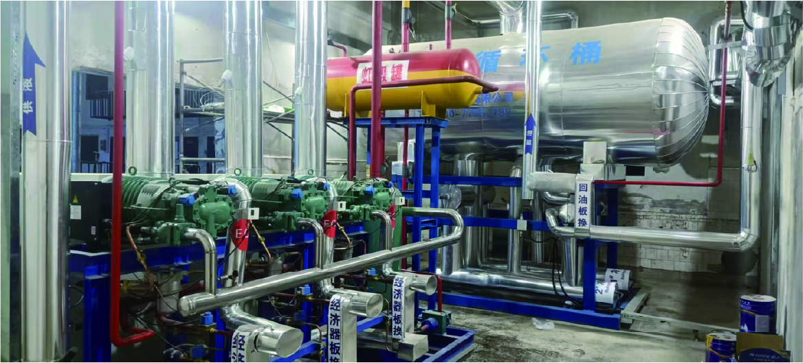 技術(shù)實(shí)現形式:螺桿并聯(lián)機組,兩翅片鋁排管,全自動(dòng)控制。